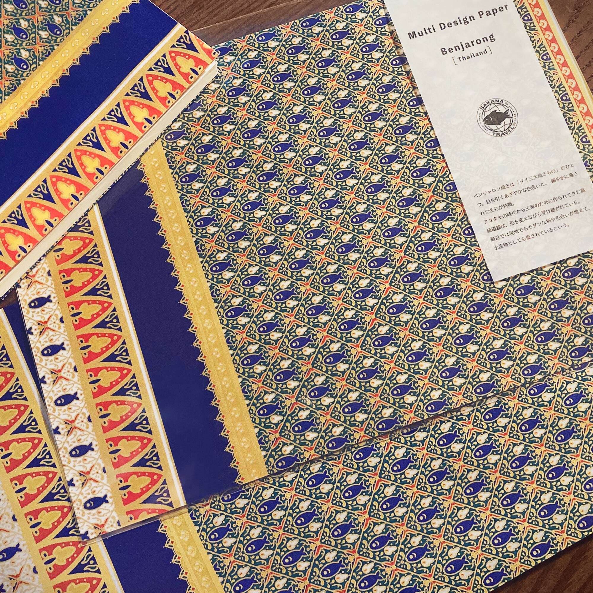 タイの三大焼き物のひとつ、ベンジャロン焼きの華やかな文様から着想を得て、魚をモチーフに仕上げたオリジナルのデザインペーパーです。