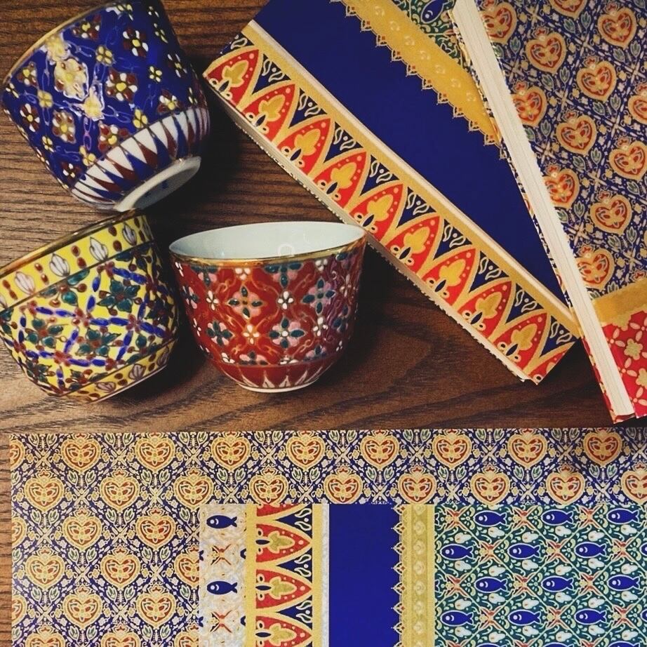 タイの三大焼き物のひとつ、ベンジャロン焼きの華やかな文様から着想を得て、ハートをモチーフに仕上げたオリジナルのデザインペーパーです。